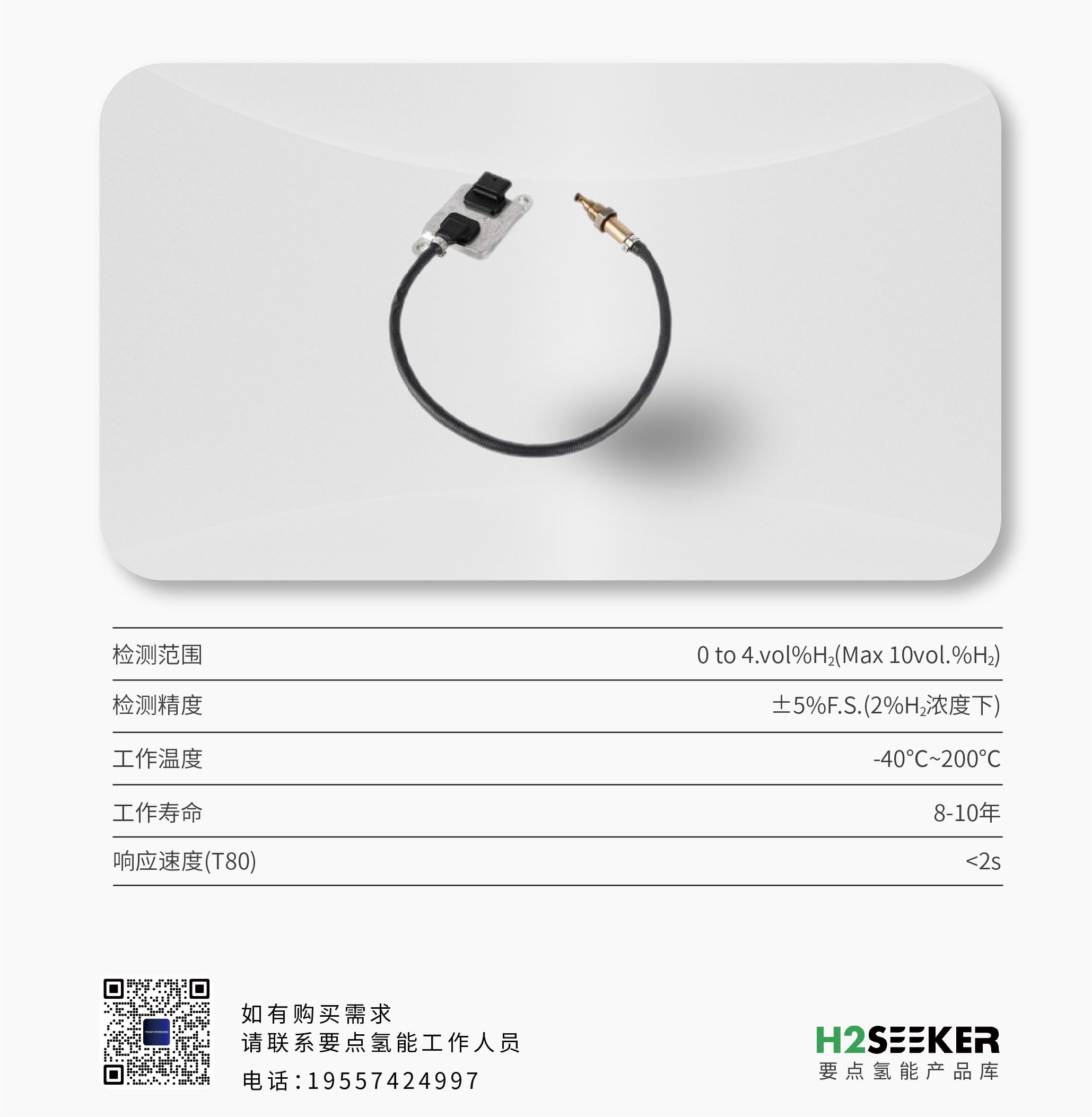 The HP-H014EH series hydrogen concentration sensor is based on the principle of thermal conductivity detection and is equipped with a self-developed MEMS level hydrogen sensitive chip, designed specifically for harsh environments. This product has a 0-10vol.% wide range hydrogen detection capability, supports continuous operation in a wide temperature range of 200 ℃, and can achieve a stable service life of up to 8-10 years.